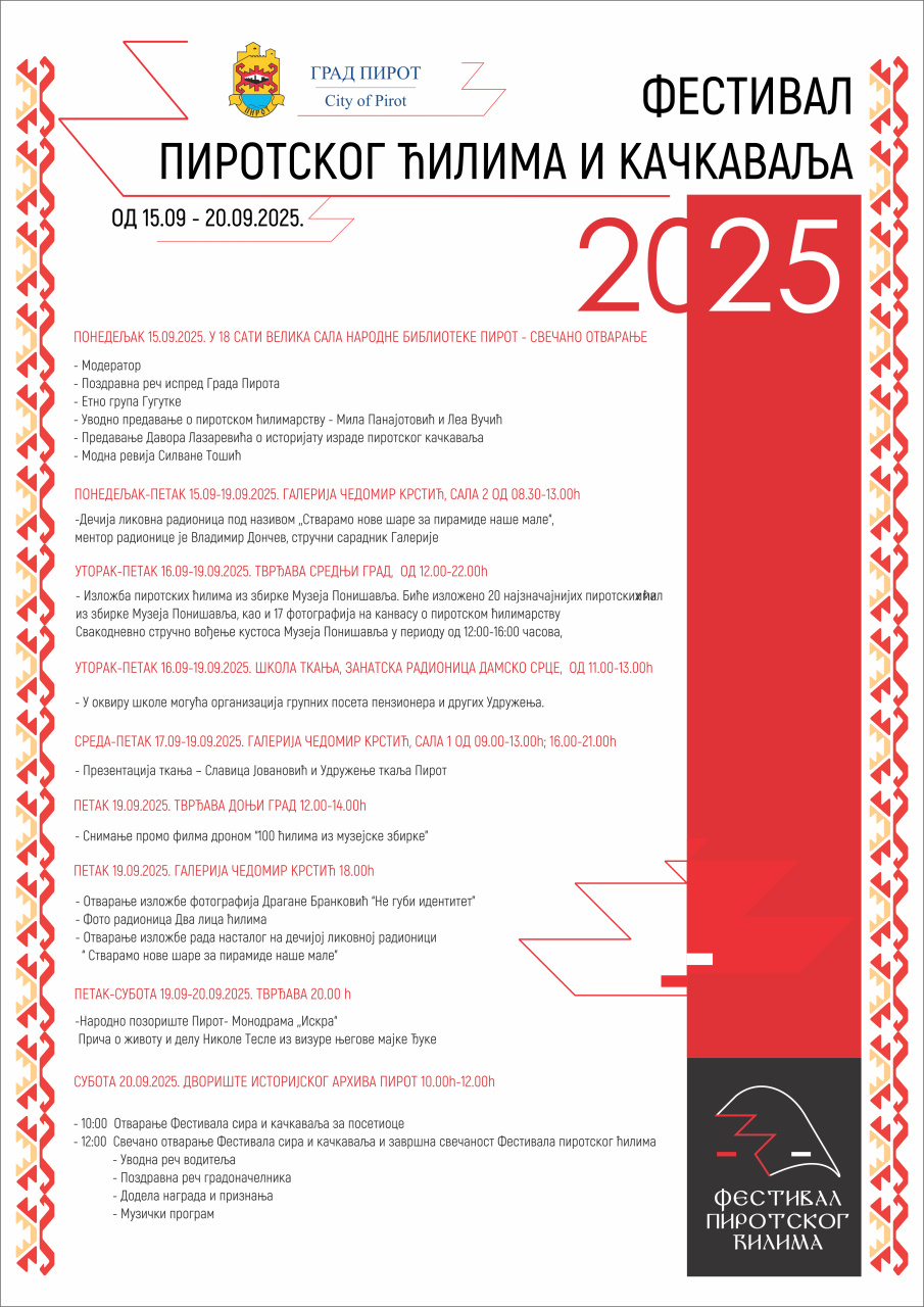 Zamenik gradonačelnika Pirota, Miloš Colić, pozvao je sve građane da dođu na festivale i istakao da ćilim doprinosi očuvanju našeg nematerijalnog kulturnog nasleđa, kačkavalj našoj domaćoj radinosti, a oba festivala imaju za zadatak da razvijaju i turizam.