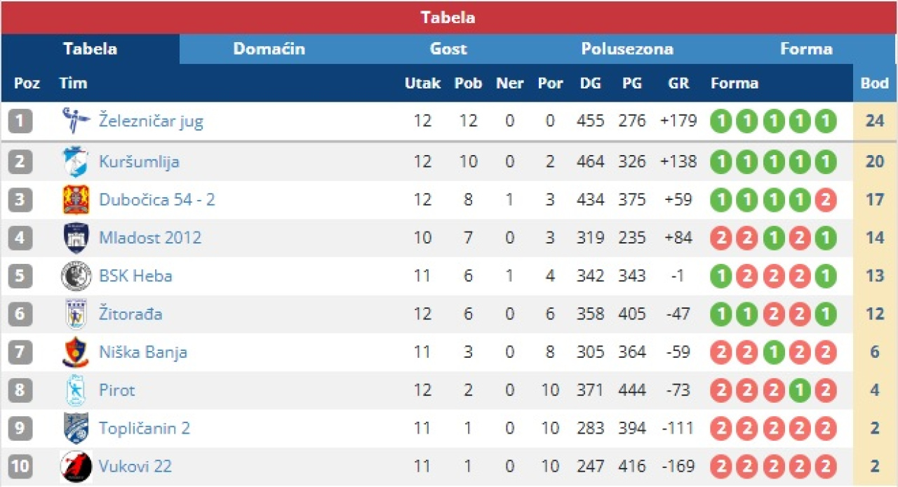Niš: Železničar Jug - ORK Pirot 53:32 (28:18)