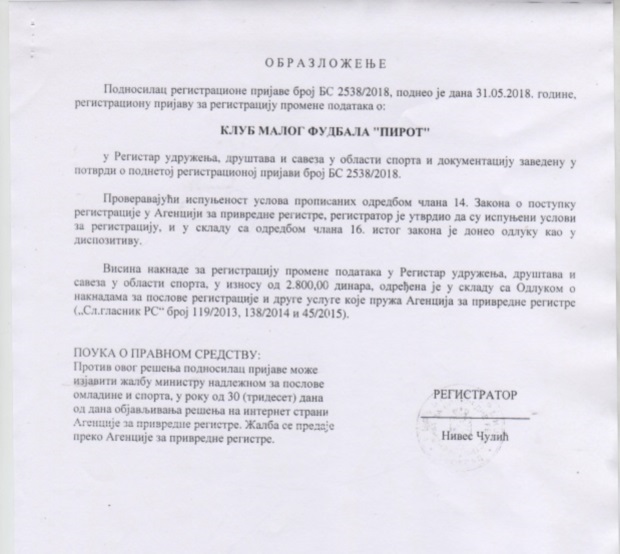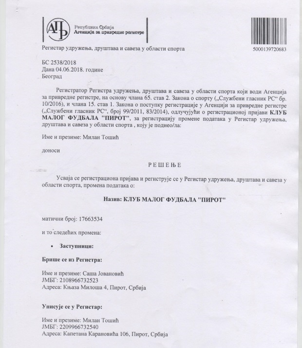 Zbog toga je sinoćni pokušaj smene od strane ,,Draganovih pučista,, neprimeren pokušaj kakvih do sada u pirotskom sportu nije zabeležen! Ukoliko Dragan Stanković i njegovi istomišljenici žele Klub, nema nikakvih smetnji da se organizuju i osnuju novi Klub koji se može zvati ... Postoji jedini mogući put kojim se stiže do vlasti u Klubu, registracija, Agencija za privredne registre, selekcija igrača i takmičenje.