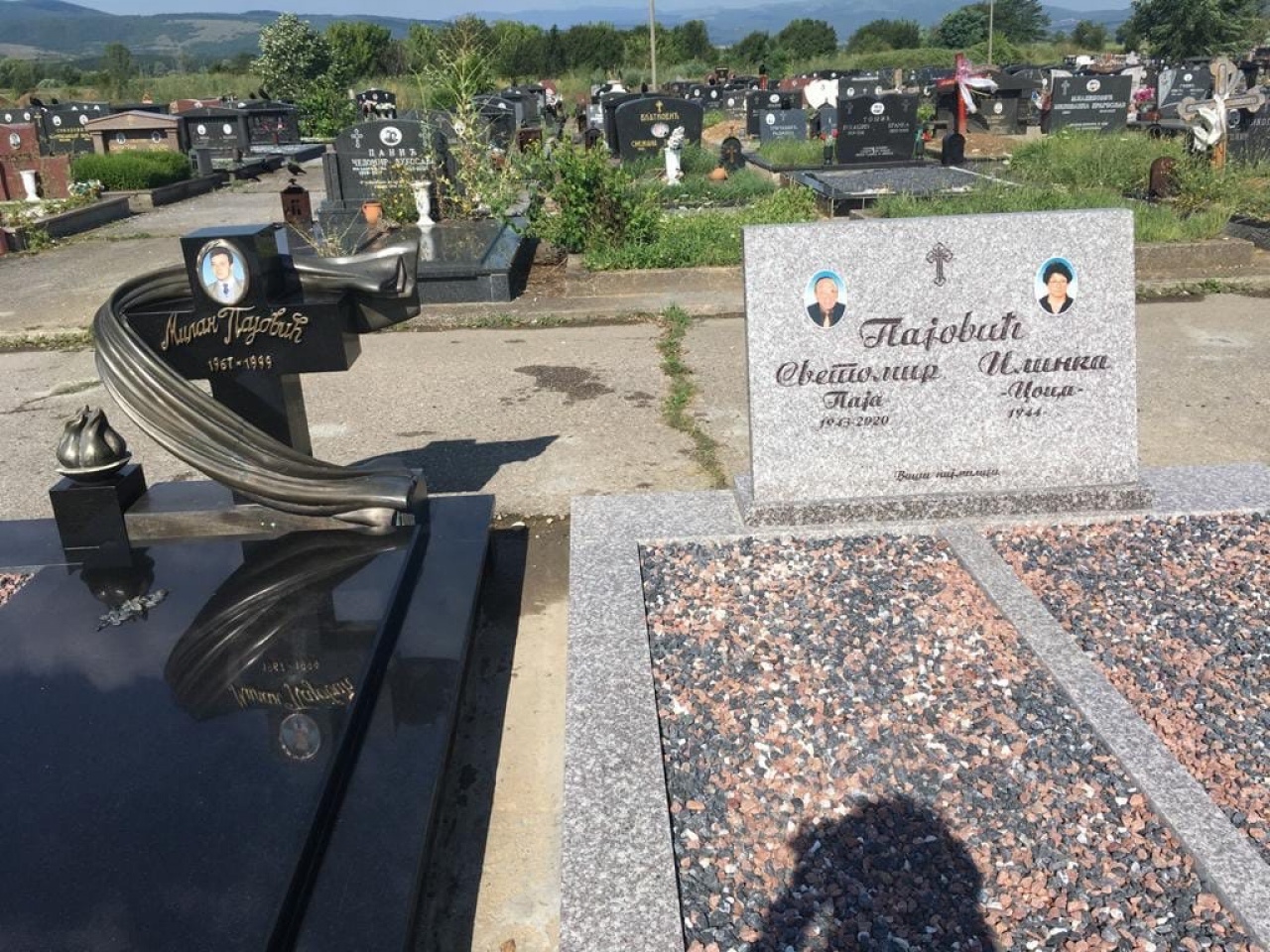 Tuga nas je sačekala i na Novom pazarskom groblju. Velika ljubav, poštovanje porodice Pajović. Draganin otac i brat su ovde sahranjeni. Pajina supruga i sestra u bolu, ali i velikom ljubavlju, natapajući suzama, osmislile su spomenik.