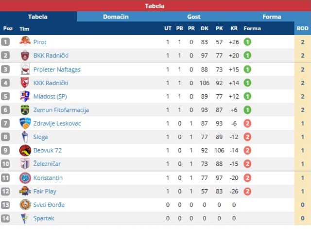 Pirot: Djonlić 18 (2:1) 5. tr. 7 asit. indeks 28; Mukanović 5 (2:0) 1 tr., 4 asist; Filipović 13(5:4) 2 tr. Stanković, Balović 7, 1 tr. D. Djordjević 12 (2:2) 2 tr. Vasić, Matović 14 (4:4) ind. 27. skok. 12 (dabl dabl) Ljubenković 5 1 tr. , B. Djordjević 9 (2:1) skokovi 9, Stojanović