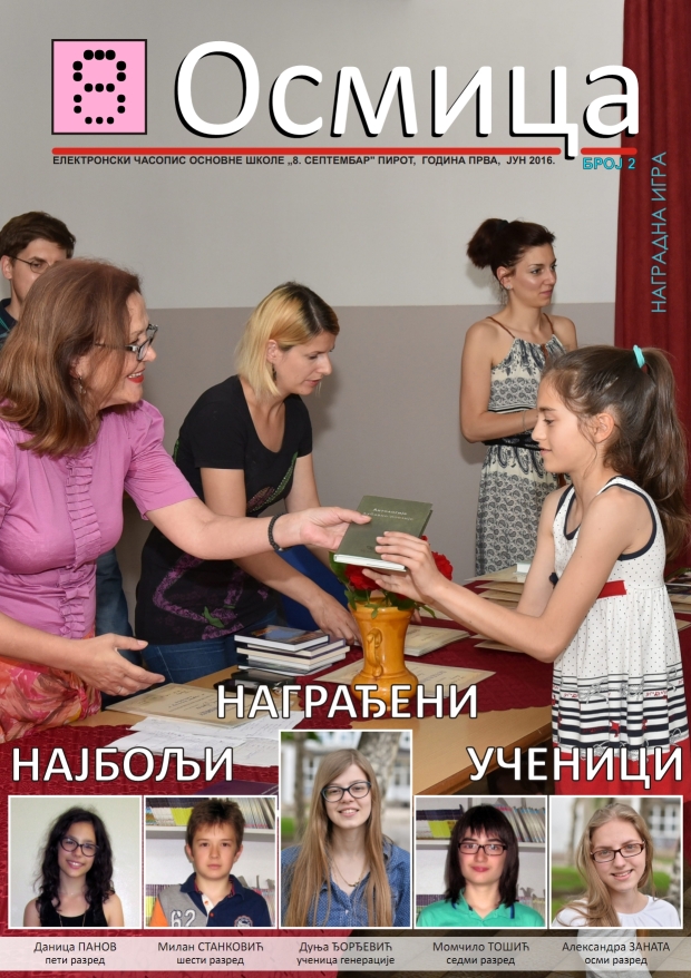 Svetlost dana ugledao je drugi broj elektronskog časopisa Osnovne škole „8. septembar” – Osmica. Ova jedinstvena forma prezentovanja rada jedne obrazovne ustanove u pirotskom kraju je nastojanje rukovodstva i nastavnog kadra škole da u skladu sa vremenom u koem živimo na prijemčiv i lako dostupan način predstavi svoj rad i dostignuća. Na preko 40 strana nalaze se retrospektivne informacije u vidu članaka i reportaža o uspesima i životu škole u prethodnoj godini, ali i zanimljive i neobične rubrike. Za izradu časopisa zaslužna je Novinska sekcija u saradnji sa Timom za medije .– Lidija Janković, Valentina Aleksić, Mima Colić, Dragana Madić i Danijela Živković.