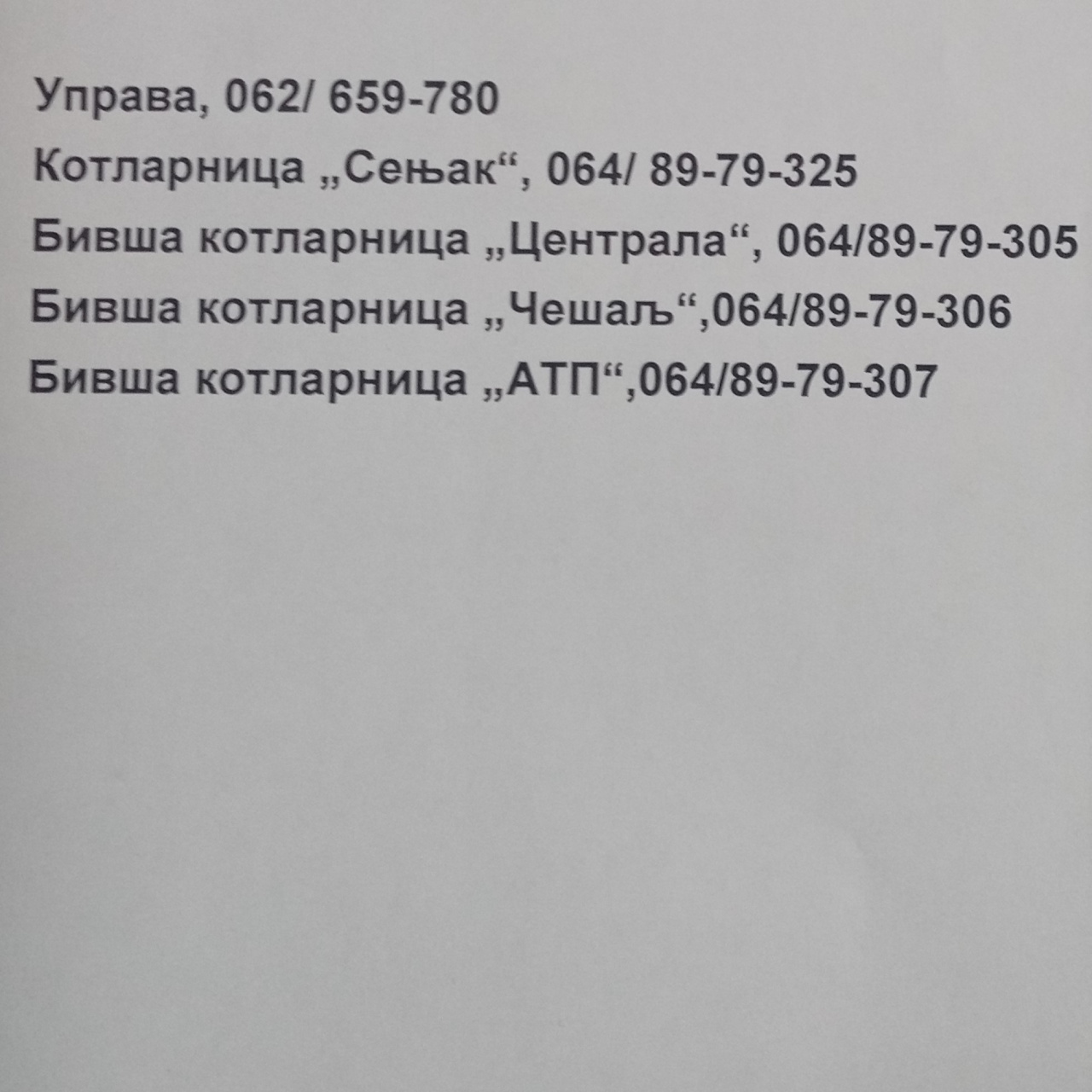 Brojevi za kontakt u tom periodu su navedeni ispod: