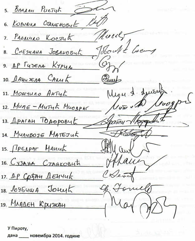 Zahtev je podnelo 10 odbornika SNS-a, 2 odbornika Pokrenimo za Pirot, 4 nezavisna odbornika, 2 odbornika NDS- i 1 odbornik SDP.