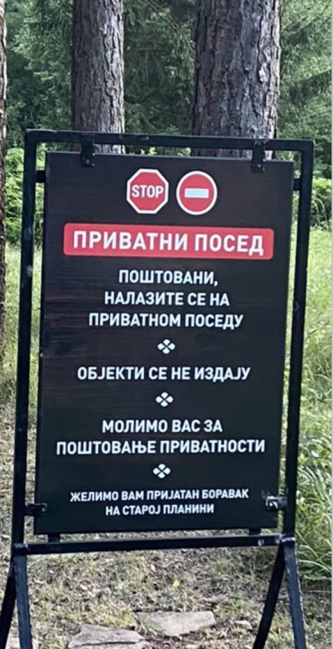 Iskreno se nadamo da je reagovanje vaseg pratioca Portala posledica zablude i nepoznavanja materije a ne spekulativne prirode i ovim putem najiskrenije zelimo vasem pratiocu i svim neinformisanim setacima da se izvinimo ukoliko su doziveli blo kakvu neprijatnost dok su setali na nasem posedu.Ponavljamo da nas radnik ima instrukciju da ne ulazi u bilo kakvu raspravu, već samo da informise ljude da su na privatnom posedu ukoliko nisu procitali tablu.