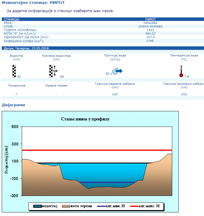 Prema podacima Hidrometeorološkog zavoda, vodostaj Nišave opao je od juče za oko 40 santimetara, a takodje je opao i proticaj vode.