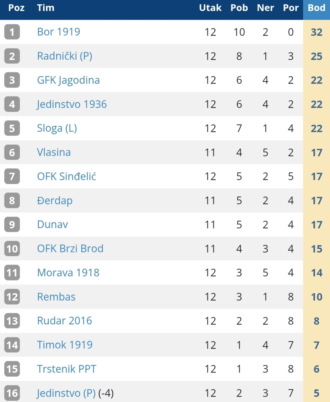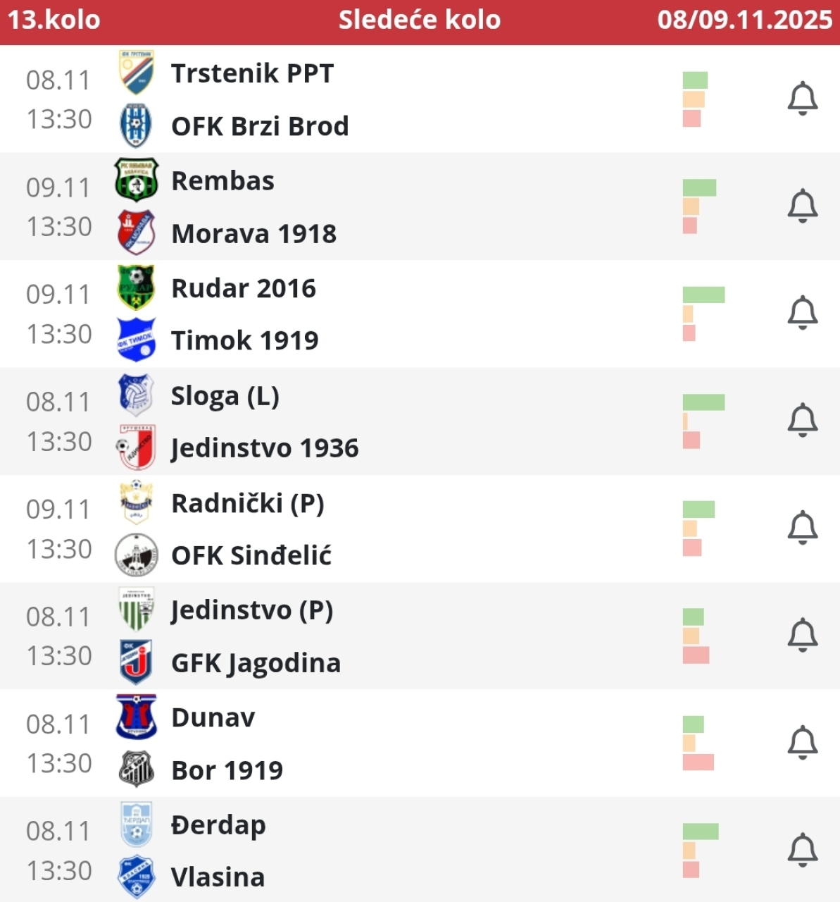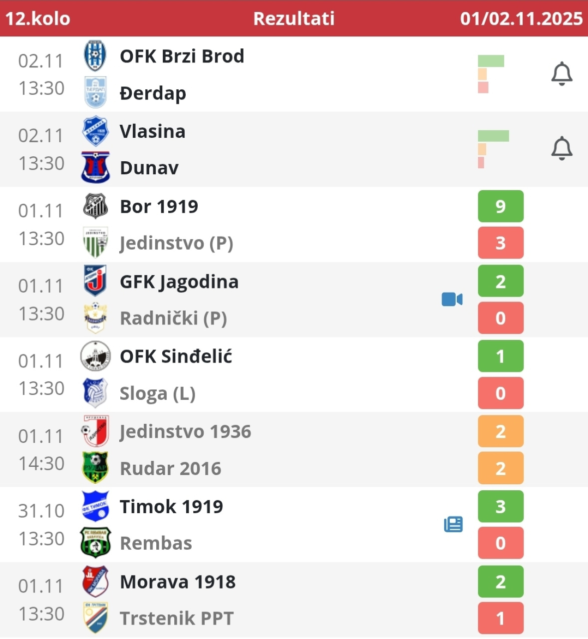 14. apr 2026. 17:45 Omladinska liga FS RIS, 22. koloPomoćni teren Stadiona "Dragan Nikolić"Pirot: Radnički - Radnički (Niš) 1:2 (0:0)Radnički Pirot: Jovanović, D. Rančić, Mančić, Denčić, Aleksić, Nakov, Ćirić, Lu....