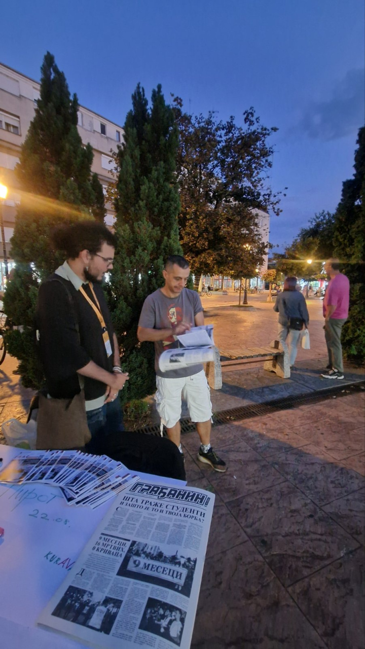 Cilj akcije je da se studenti približe građanima, podele svoja iskustva i razgovaraju o važnim društvenim pitanjima, pravdi, slobodi i budućnosti mladih u Srbiji.