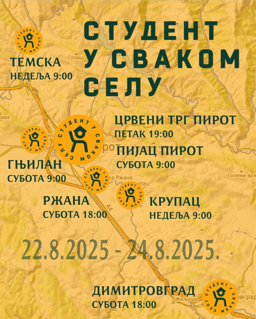 Još jednom podsećamo na termine i mesta akcije "Student u svakom selu":