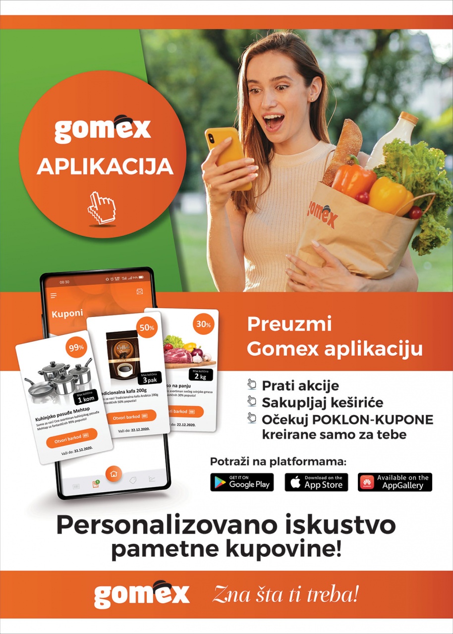 Prava prednost ove promo aktivacije ogleda se u pametnim poklon-kuponima (koje potrošači dobijaju putem aplikacije) i koji su potpuno personalizovani, tj. prilagođeni svakom ponaosob, na temelju proučavanja prethodnih kupovina. Na taj način, svaki kupac imaće priliku da ostvaruje popuste baš na one artikle koji su mu potrebni. Gomex aplikacija uz to omogućava i praćenje akcija i sakupljanje keširića.