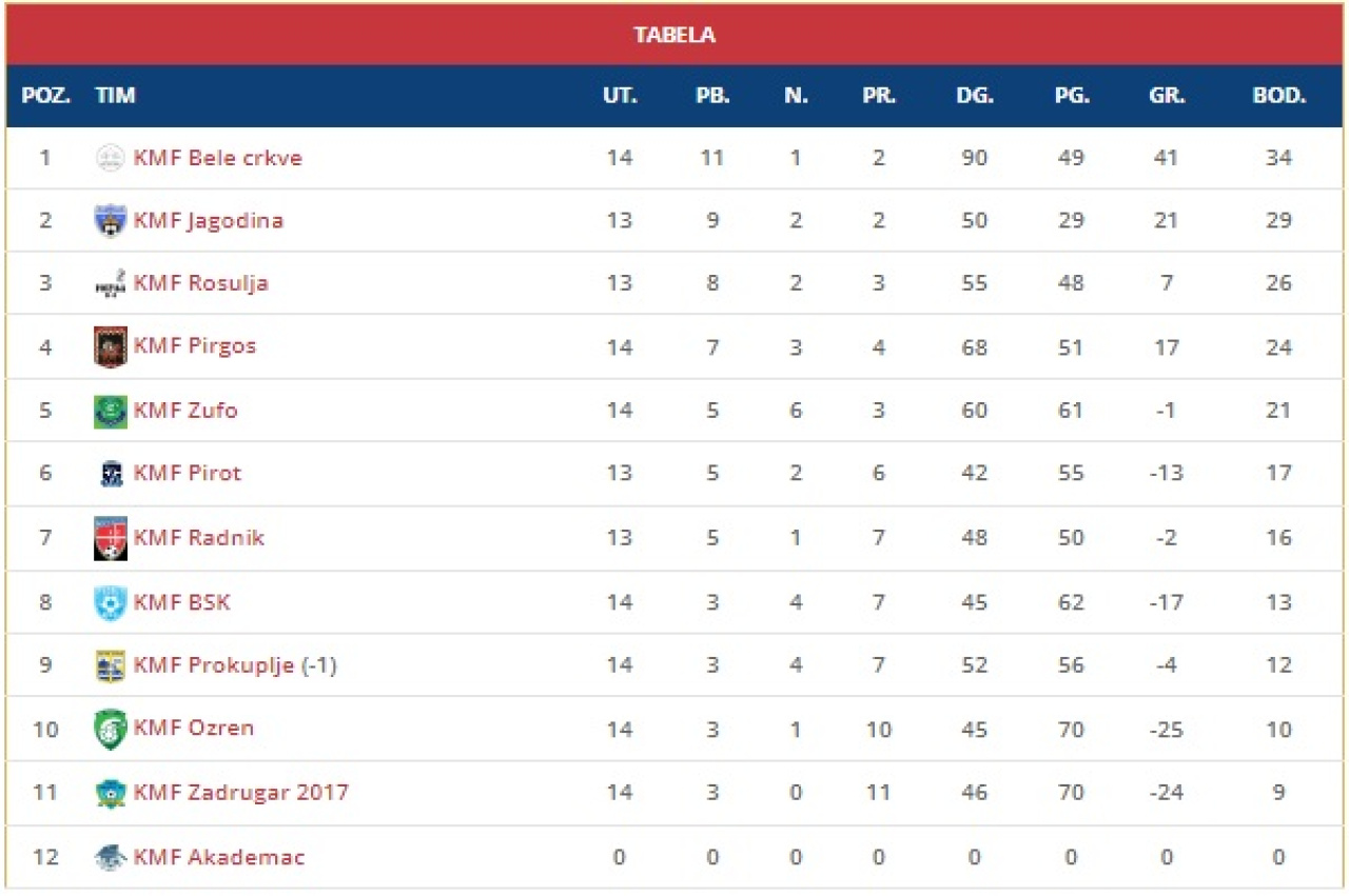 29. apr 2026. 11:17 Treća futsal liga Istok, 20. koloDespotovac: KMF Despot – KMF Pirot 8:2Znalo se da je Despot dobar tim, da će ekipi Slobodana Ristića biti teško u Despotovcu, ali da će se utakmica ovako ... -