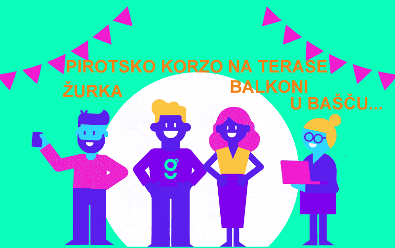- Preko terase, mejlom, telefonom, uz pomoć upravnika zgrade i vašeg tima za organizaciju, spojite dve komšijske zgrade i napravite tim. Dajte ime tom timu. A onda se dogovorite šta će se događati na balkonima, terasama. Program zavisi od vaše duhovitosti, od pesama koje ćete pevati.