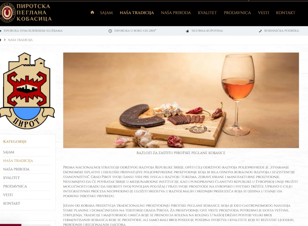 Na sajtu je predstavljeno oko tridesetak proizvođača i dugogodišnjih izlagača ovog proizvoda. Svi proizvodi izlagača i proizvođača poslati su u Veterinarski Institut Niš na mikrobiološku analizu. Pored toga, svi zainteresovani mogu da se, na sajtu, dodatno informišu o zaštiti geografskog porekla imena i Elaborat zaštite proizvoda, tu je i retrospektiva svih sajmova peglane kobasice, video zapisi proizvodjača i njihovo predstavljanje, rekao je u izjavi za Portsl Plus oline, Marjan Savić, predsednik Udruženja.