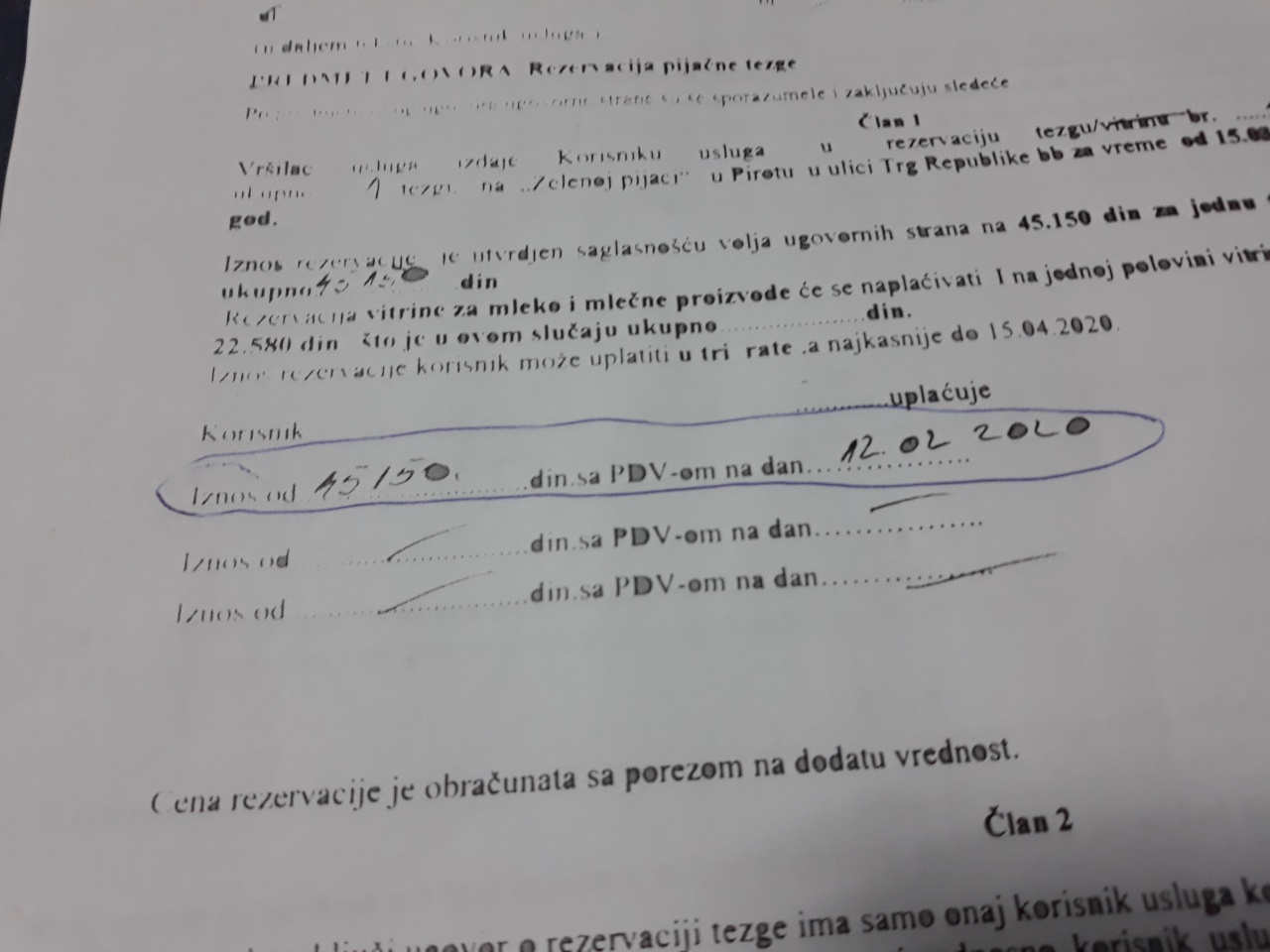 Ona je priložila i primerke ugovora o zakupu i fiskalni isečak dnevne kvite.