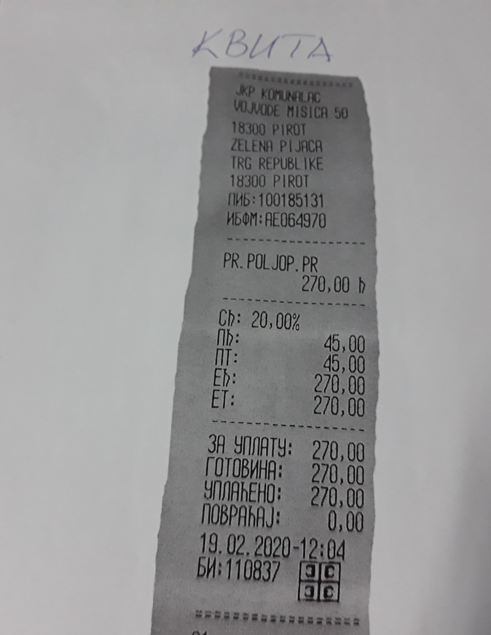 Ono što mogu da kažem jeste da je naša pijaca jedna od najjeftinijih u Srbiji. Cene zakupnina nisu menjane godinama unazad i do sada nismo imali primedbe. Cene zakupa i kvite odgovaraju platežnoj moći potrošača, a što se tiče paušalnog poreza to apsolutno nije u našoj nadležnosti. U planu je projekat nove Zelene pijace, tako da će naredne godine imati potpuno novu Zelenu pijacu, a sve u cilju naših građana, kaže Tolić.