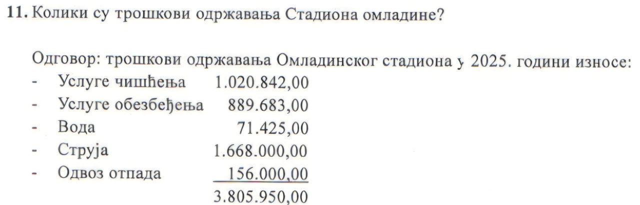 I dok se za stadion ne predviđa "ni banka", dotle se za Omladinski stadion i Klizalište potroši skoro pet miliona. Evo dokaza.