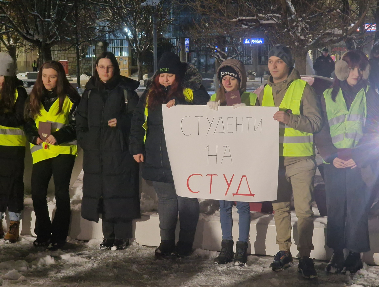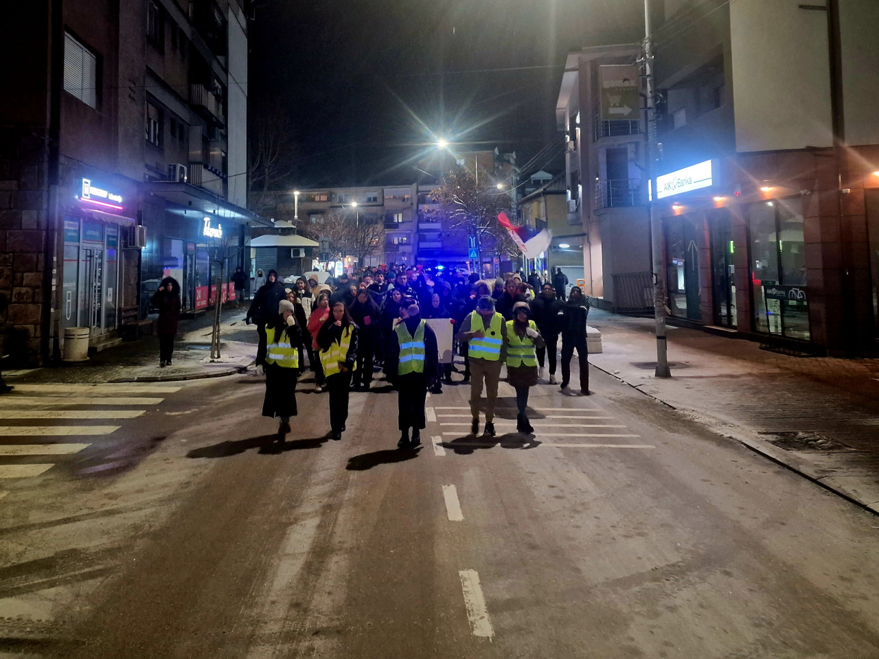 Dakle, sve je počelo po već ustaljenom redosledu - prvo su okupljeni kod znaka PIROT u centru grada odali počast preminulima u Novom Sadu u trajanju od 15 minuta, počev od 19 časova.