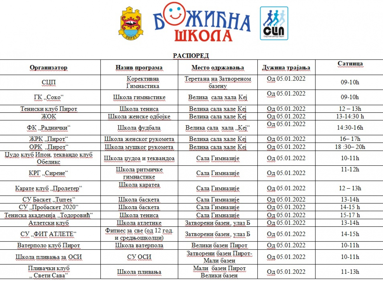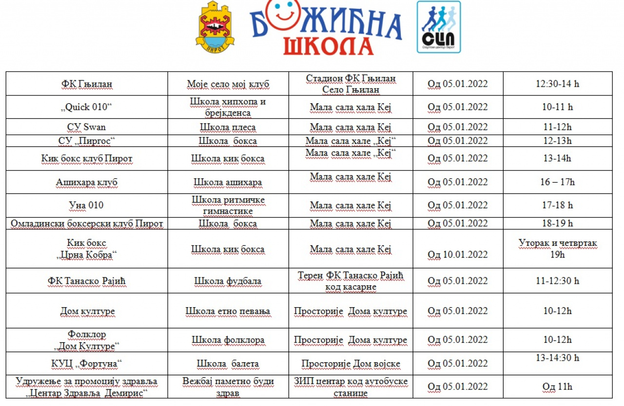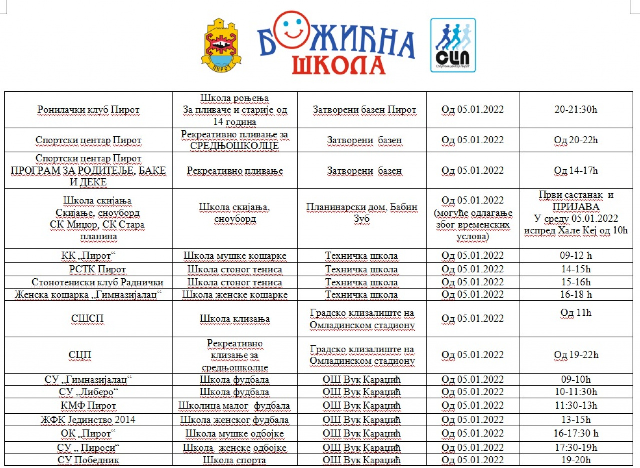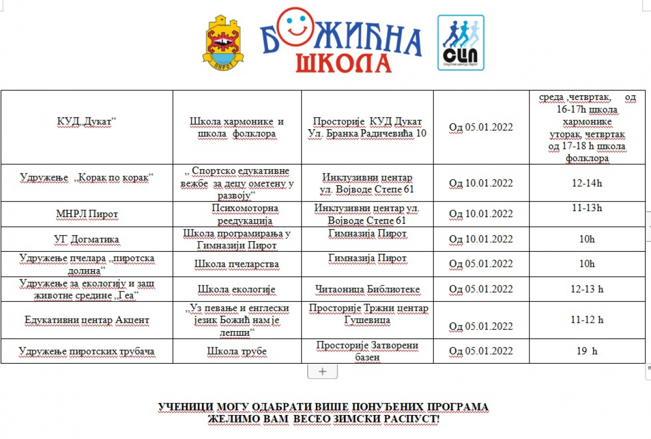„BOŽIĆNA ŠКOLA 2022“ počeće u sredu, 5. januara.