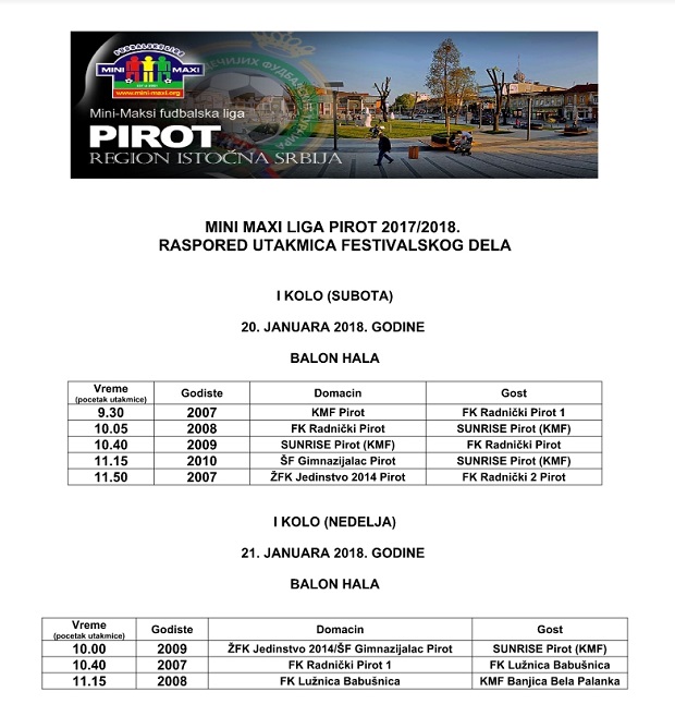 Počela je Mini-Maksi liga Pirot, manifestacija u kojoj učestvuju mališani u brojnim gradovima Srbije, pravi Pokret koji će doprineti zdravlju dece, radosti, ostvarenju dečačkih snova. Roditeljima, da se lepo osećaju.