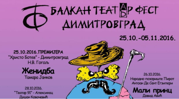 - Tradicionalni pozorišni festival u Dimitrovgradu, dvanaesti po redu, otovoren je sinoć predstavom „Ženidba“ koja je premijerno izvedena. I ova predstava je vrlo dobro primljena i posećena. Prema pripremljenom programu za ovogodišnji Balkan teatar fest predviđena su gostovanja pozorišnih ansambala iz Pirota, Aleksinca, Sofije i Beograda, istakao je Manov.