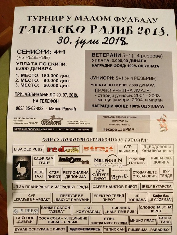 Počinje “Tanasko Rajić”, najbolji Turnir u malom fudbalu u Pirotu!