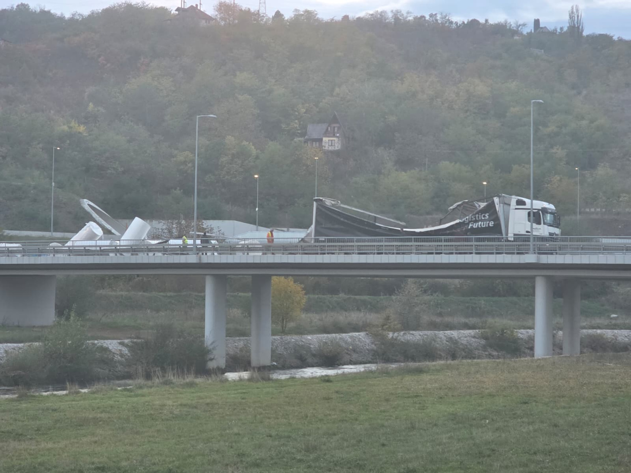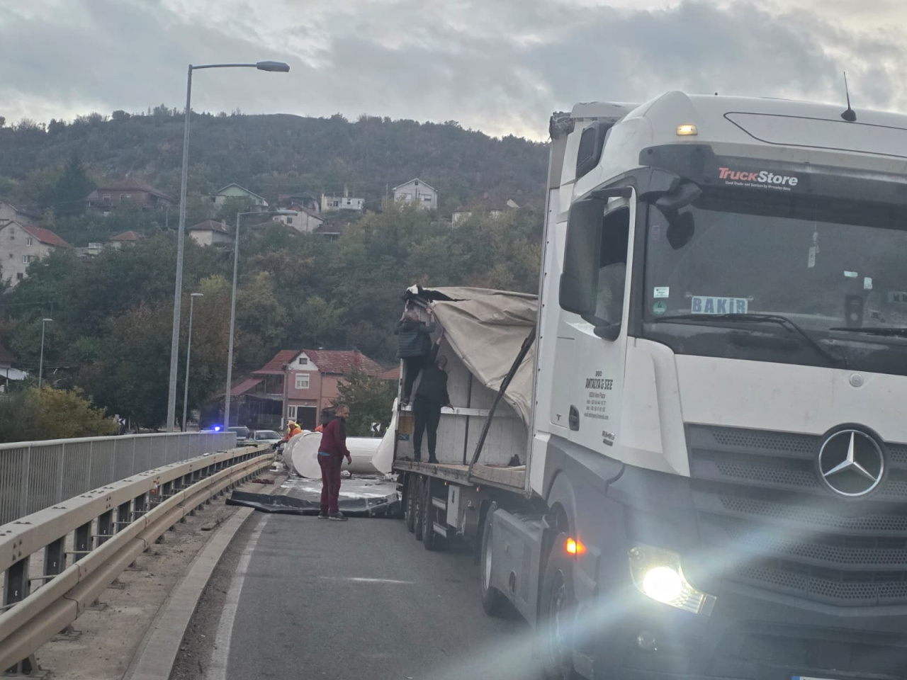Podignut šleper na mostu Sarlah, predstoji uklanjanje velikih bala papira