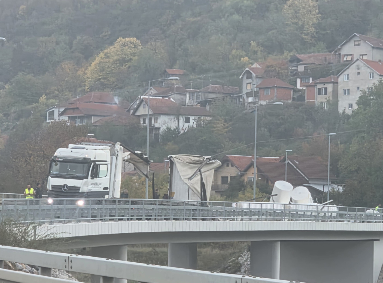 Šleper novopazarskih registracionih oznaka jutros se, oko 8 časova i 30 minuta, prevrnuo na mostu kod izlaza iz tunela Sarlah.