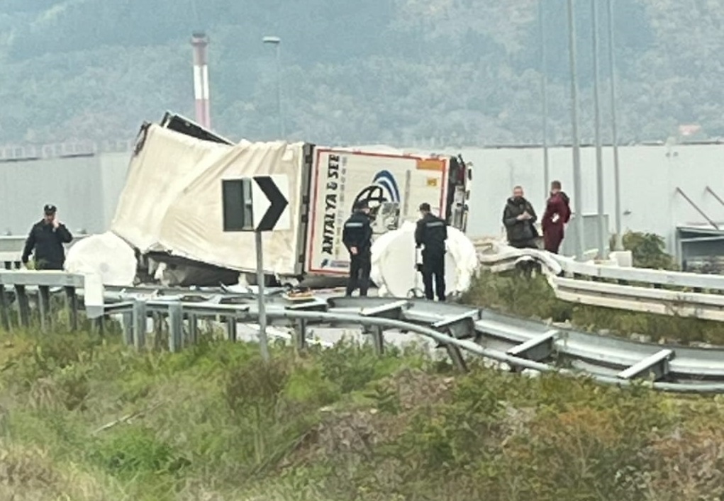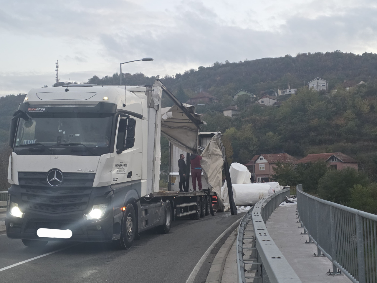 Na Alternativnom putu, iza tunela Sarlah, prevrnuo se šleper novopazarskih tablica
