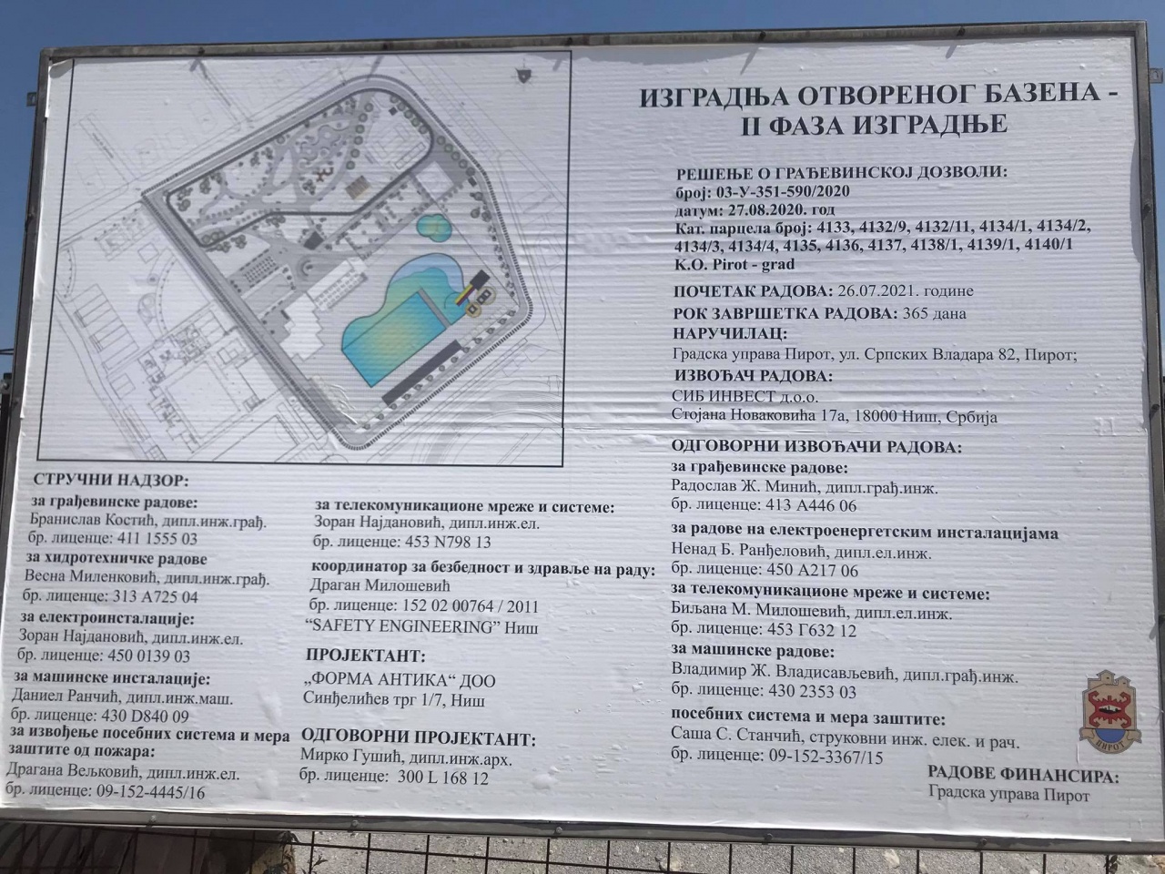 Izvodjač radova je kompanija SIB invest iz Niša, a vrednost radova u obe faze je oko 420 miliona dinara sa PDV - om. Po planu, završetak radova predvidjen je u roku od 365 dana, pa postoji mogućnost da kompleks zaživi već krajem narednog leta.