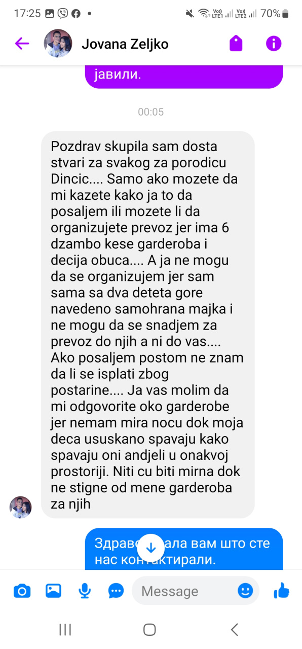 Porodici Dinčić stigla odeća iz Bele Palanke. I Komunalac pomaže!