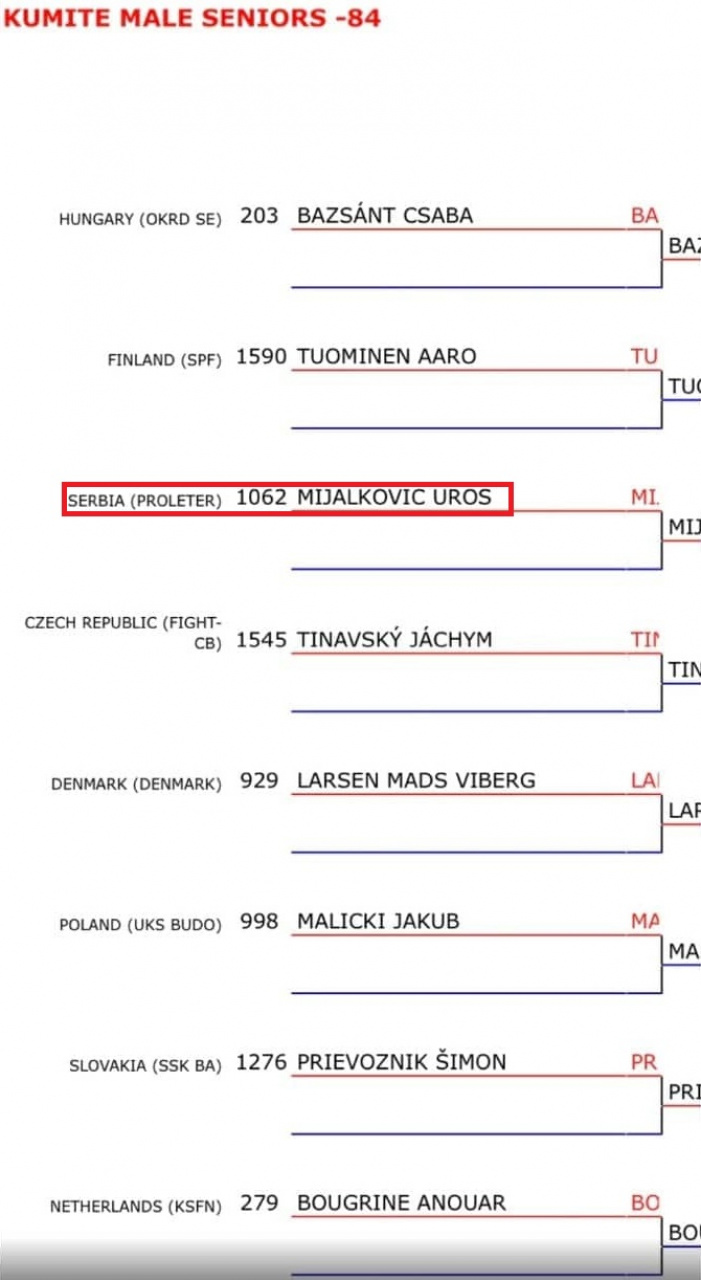 Naš šampion Uroš Mijalković boriće se u kategoriji - 84 gde se prijavilo 50 takmičara.