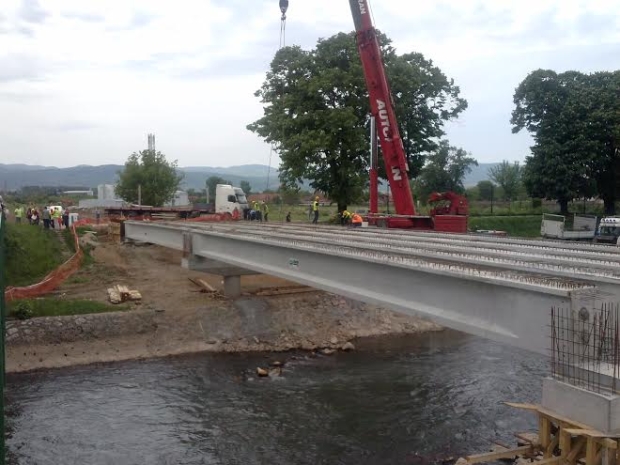 Ovih dana brojni šetači na Keju prisustvuju spektakularnom postavljanju nosača na mostu na Drugom ringu. Ogromni kran , milimetarskom preciznošću postavlja 3o tona teške prenapregnute nosače . Juče je ,,premošćena,, Nišava, postavljeno je pet nosača iznad korita, a danas , kako je i najavio Nebojša Nikolić iz Štrabaga, , odgovorni za ovo gradilište , bio je plan da se nosači postave na pazarskoj strani. Ranije nego što je predvidjeno, oko 13 časova, ,,pazarski nosači,, bili su na ,,svojim mestima,, Naša kamera ponovo je bila na mestu dogadjaja, u pravo vreme, na pravom mestu !