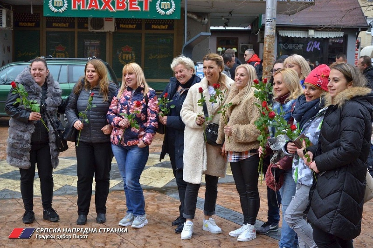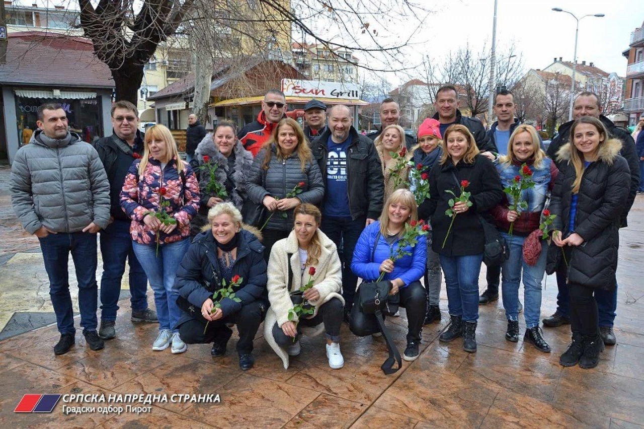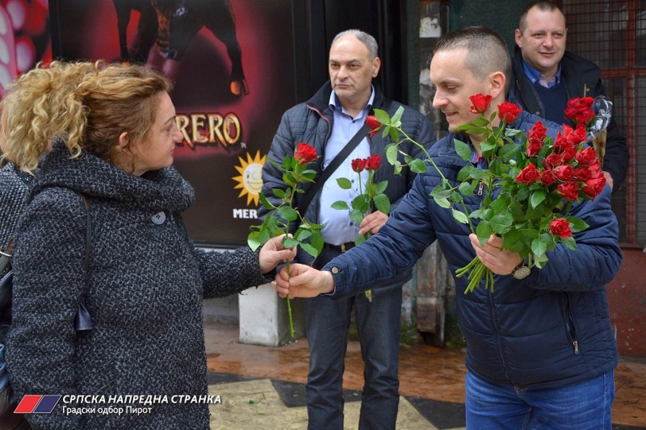 Srpska napredna stranka u Pirotu, na Međunarodni dan žena, na više lokacija u gradu organizovala je podelu ruža pripadnicama lepšeg pola.