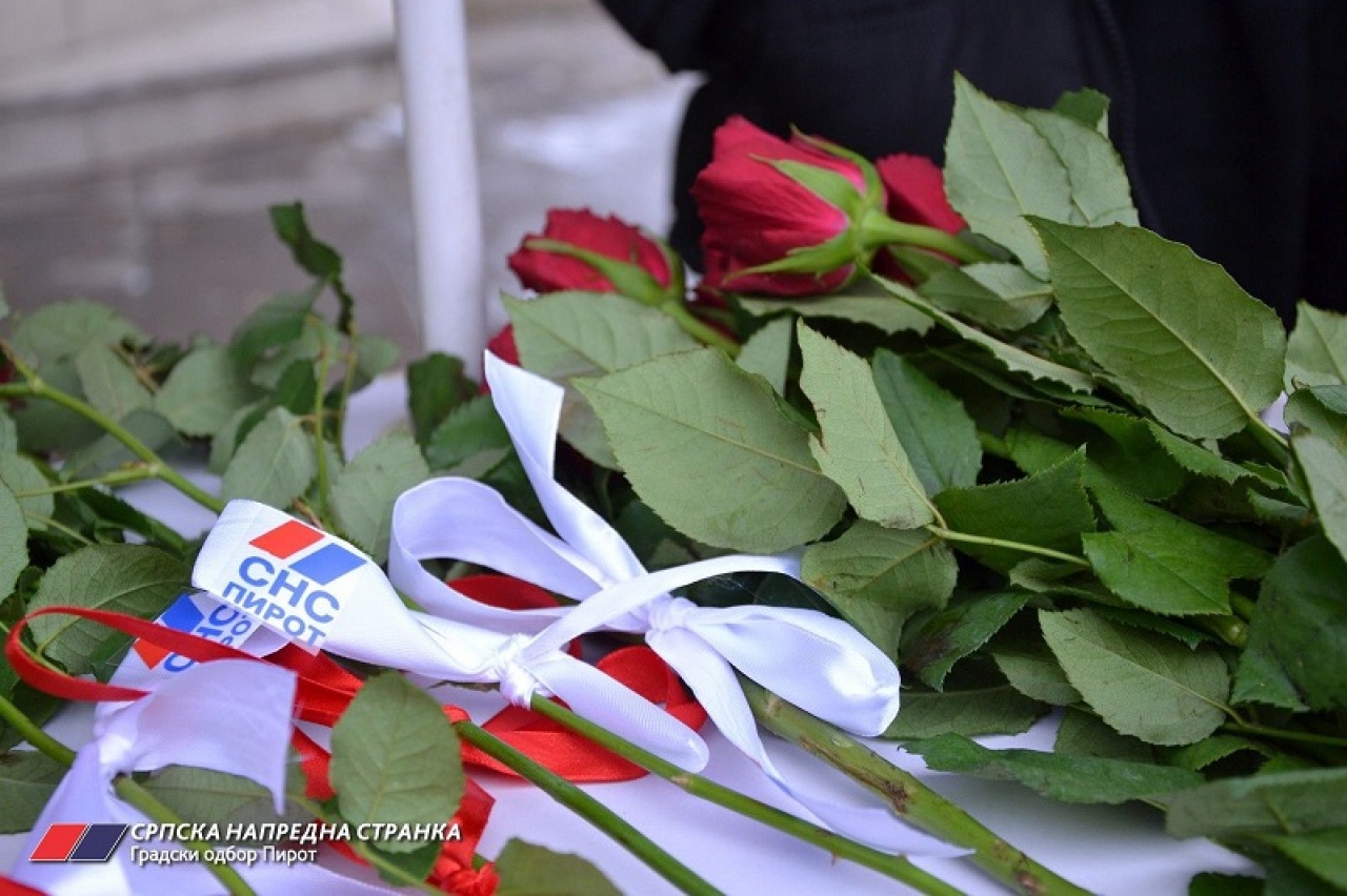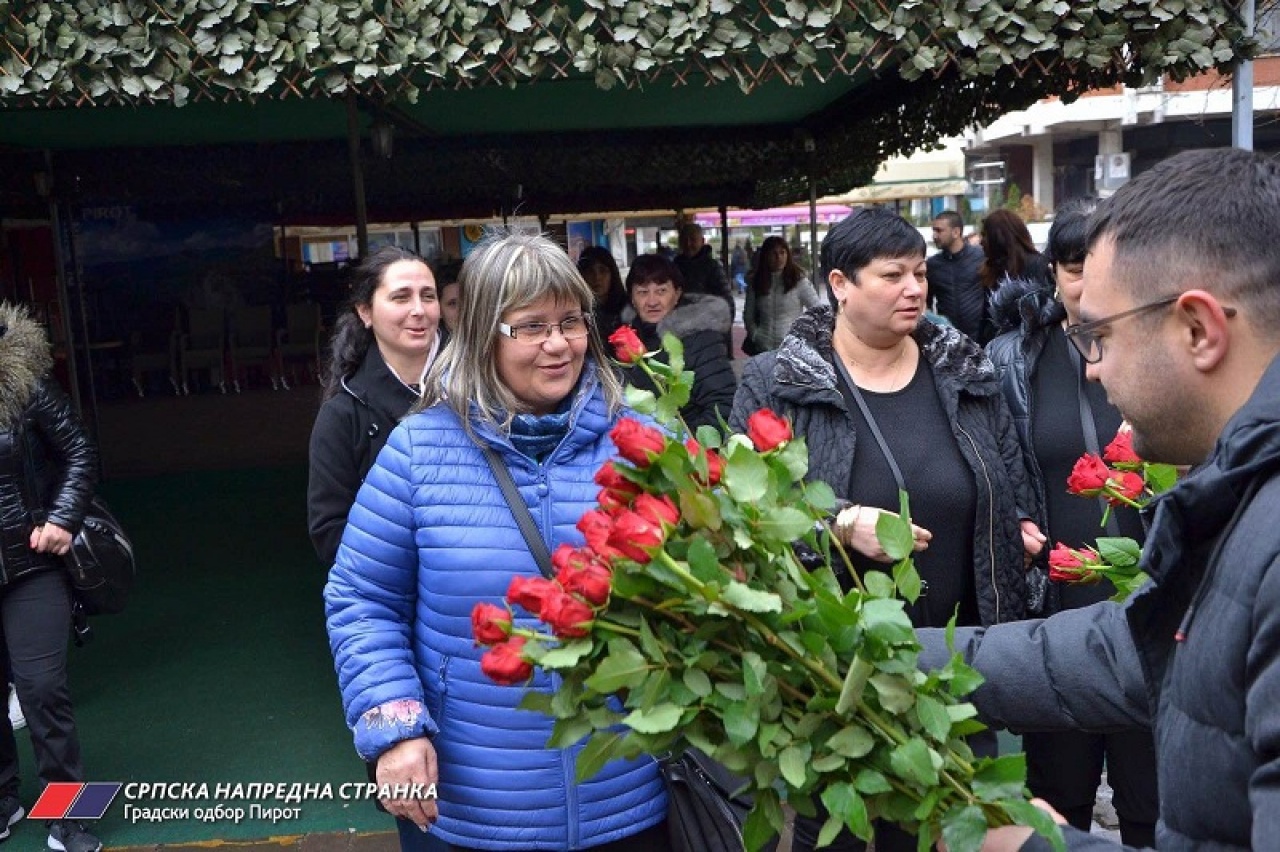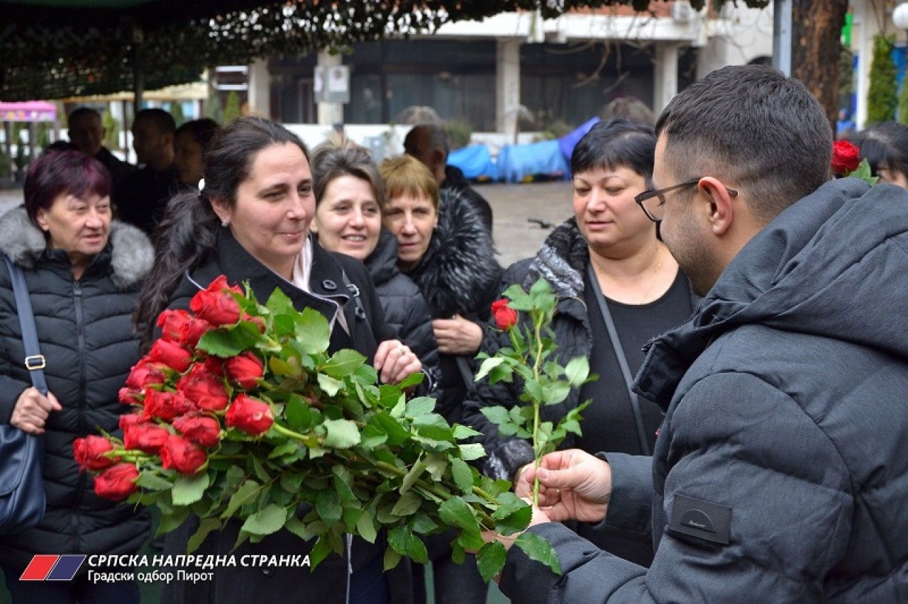 Srpska napredna stranka u Pirotu, na Međunarodni dan žena, na više lokacija u gradu organizovala je podelu ruža pripadnicama lepšeg pola.
