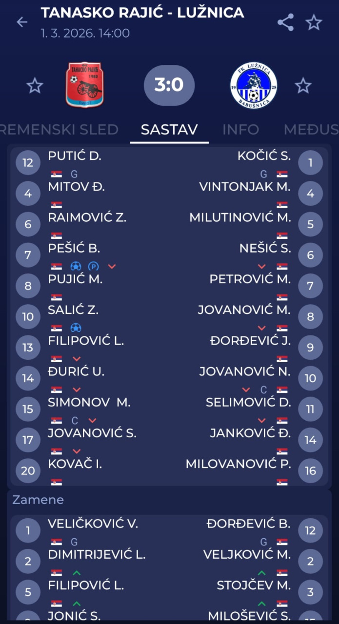 Pirot: Tanasko Rajić – Lužnica 3:0