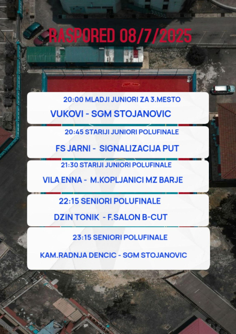 U nešto starijoj takmičarskoj grupi ekipa Signalizacija put je u ravnopravnoj utakmici ipak u samoj završnici "overila" put u polufinale. A šta tek reći za poslednji par četvrtfinala? Sastali su se jedan od glavnih konkurenata za pobednika - Frizerski salon Jarni i najmlađi četvrtfinalista ekipa Zubna ordinacija dr Dalibor Đorđević. Nakon samo nekoliko minuta bilo je 3:0 za FS Jarni i niko nije mogao da nasluti dramu koja je usledila. Na kraju izjednačenje i penali, ali je ipak starija i iskusnija ekipa FS Jarni otišla dalje posle boljeg izvođenja penala.