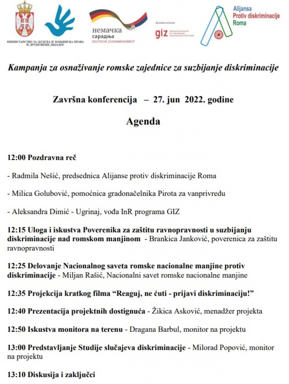 Alijansa protiv diskriminacije Roma organizuje jednodnevnu nacionalnu konferenciju u okviru Kampanje za osnaživanje romske zajednice za suzbijanje diskriminacije.