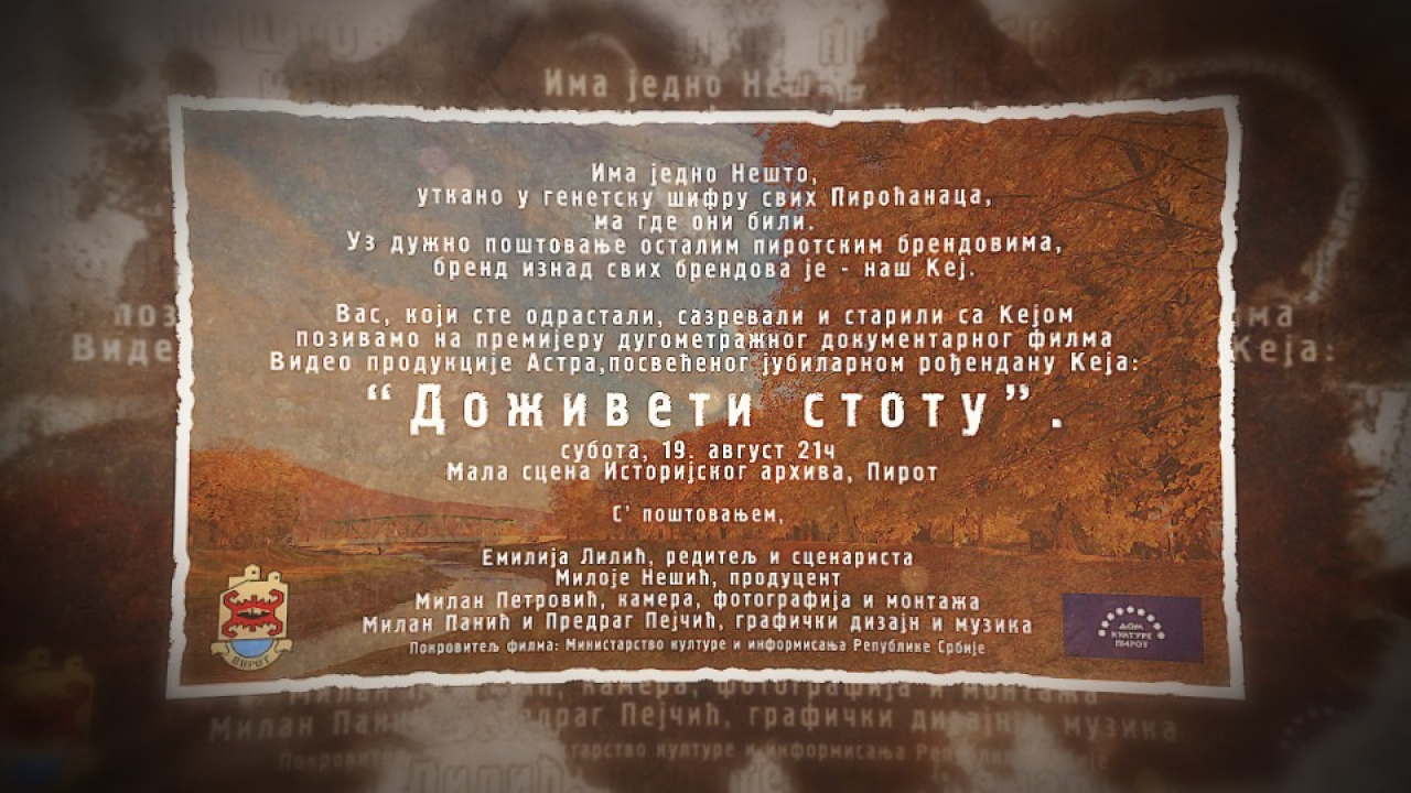 U subotu, 19. avgusta, na maloj sceni u dvorištu Istorijskog arhiva biće održana premijera filma "Doživeti stotu", posvećenog stogodišnjici izgradnje Keja.