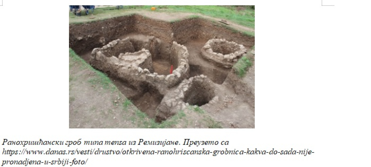 Ranohrišćanska grobnica tipa mensa iz IV–V veka u Remezijani, otkrivena 2020, pokazala je da je iznad groba postojao prostor za obrede pomena mrtvih. Tako tip grobova mensa predstavlja „postmortalni oltar“ i veza sa svetim precima iz predhrišćanskih vremena