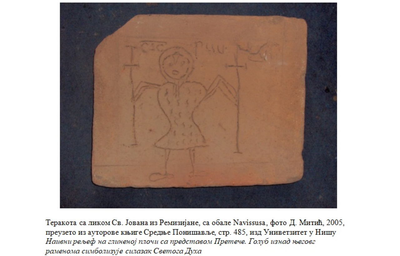 Drugi nalaz, terakota iz Remizijane, prikazuje čoveka u gruboj odeći, sa simbolima krsta i ptice — golubice. Prepoznatljivi su elementi odeće sa vlaknima (verovatno životinjskom dlakom), što su u hrišćanskoj ikonografiji atributi Svetog Jovana Krstitelja.