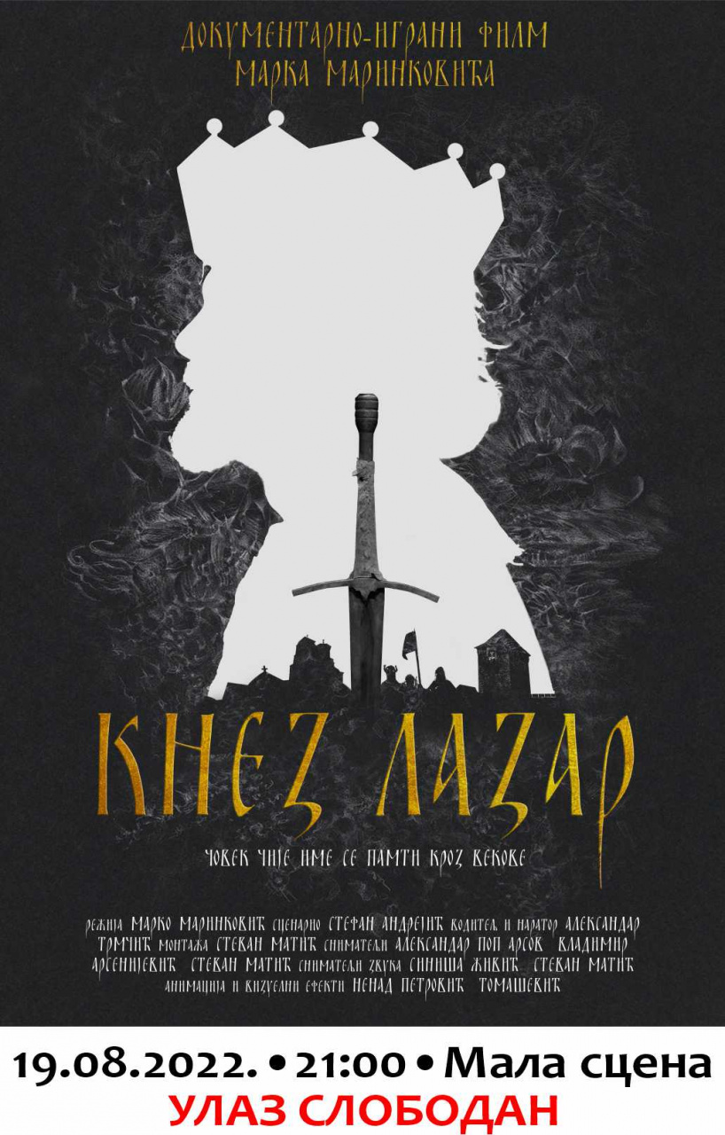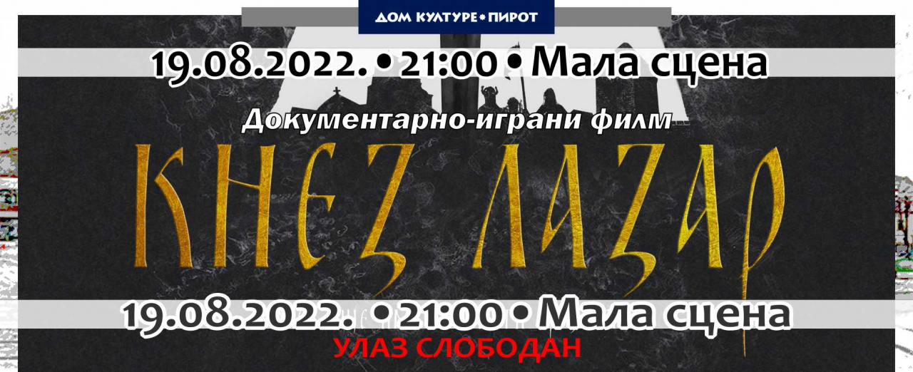 Dom kulture Pirot u okviru Pirotskog leta u petak, 19. avgusta 2022. godine od 21:00 sati na prostoru Male scene u dvorištu istorijskog arhiva organizuje projekciju dokumentarno-igranog filma „Knez Lazar“.