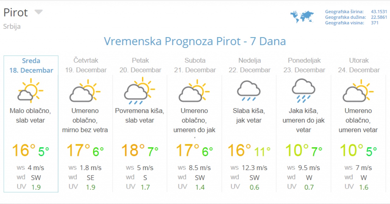 Od 21. decembra očekuje se kratkotrajno zahlađenje, a od 27. decembra sledi novo zahlađenje sa kišom, a u višim planinskim predelima sa snegom.