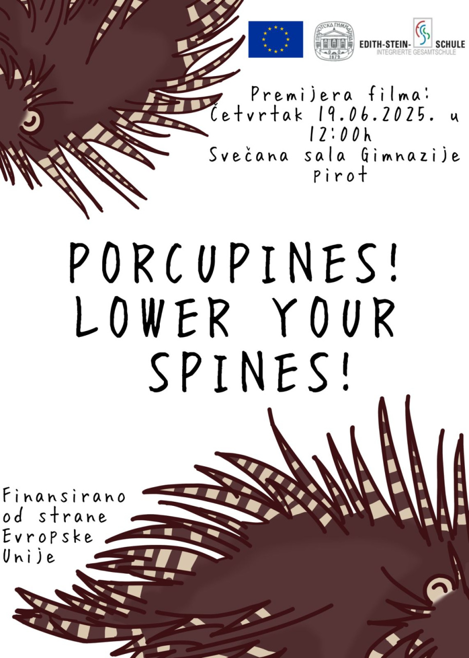 Gimnazija Pirot organizuje promociju filma „Porcupines! Lower your spines!“ i priručnika za snimanje filmova „Rečnik s(v)eta“, koja će se održati u četvrtak, 19.06.2025. u Svečanoj sali Gimnazije Pirot, sa početkom u 12 časova.