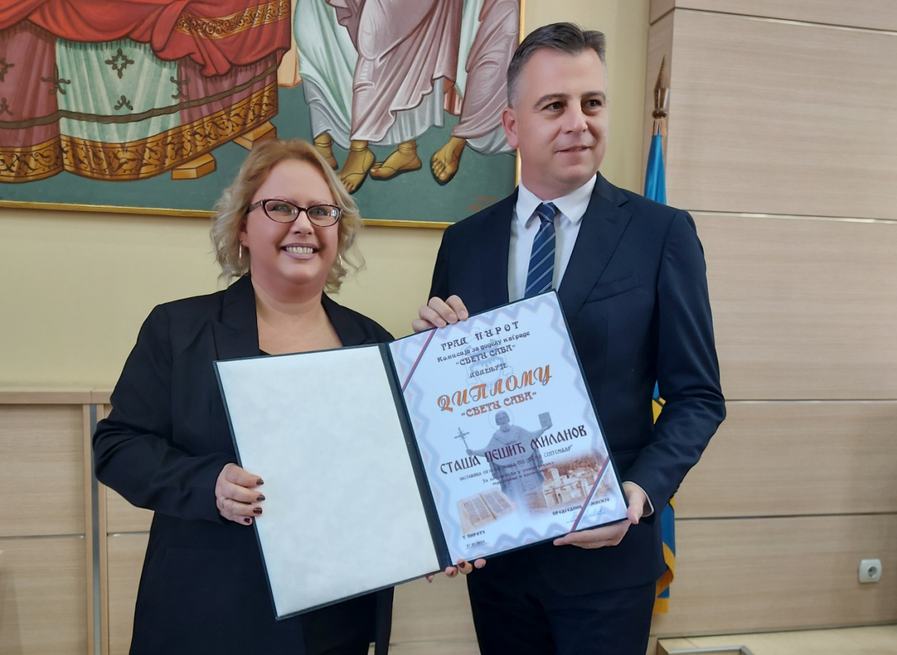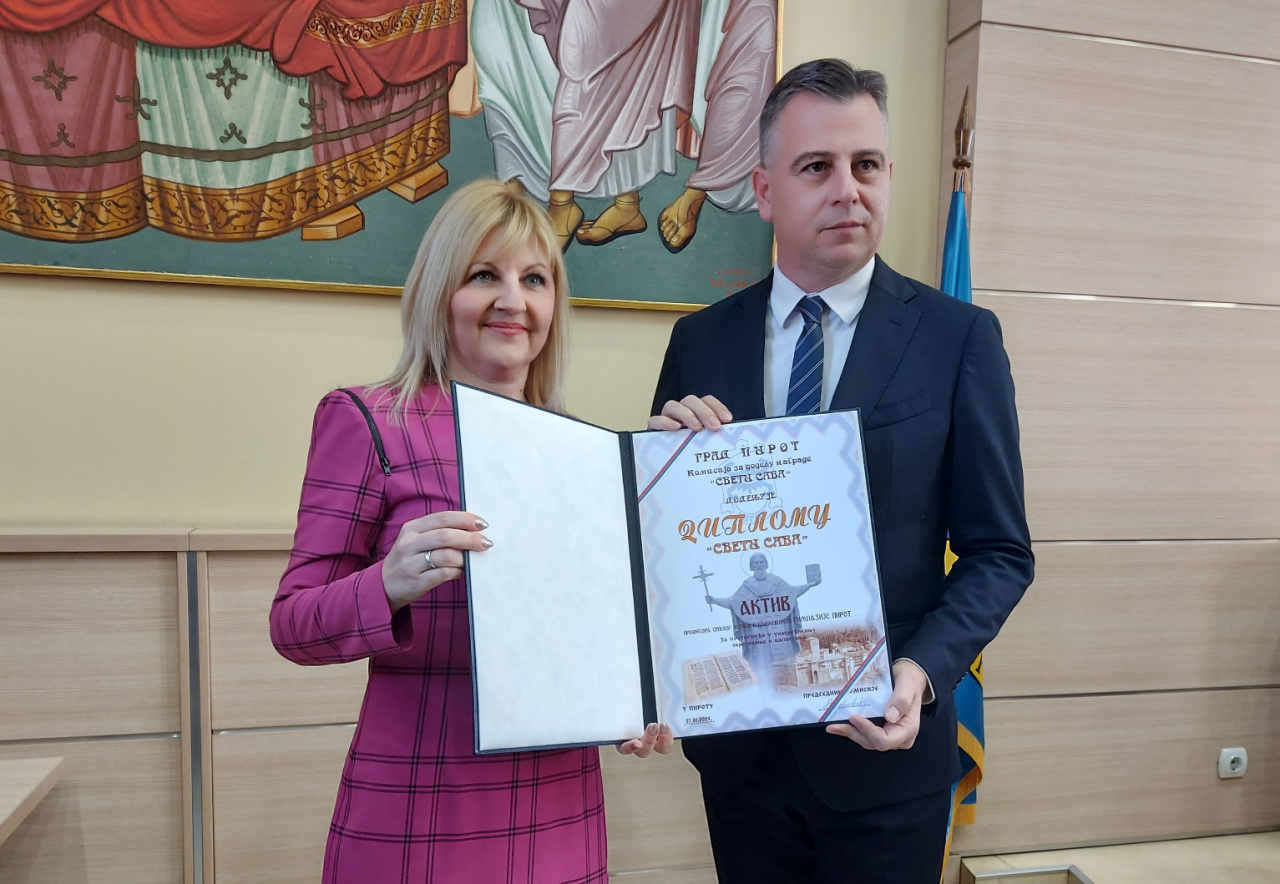 U Velikoj sali Grada Pirota upriličena je svečana dodela priznanja u oblasti obrazovanja “Sveti Sava” za 2023. godinu. Ovogodišnjim dobitnicima priznanja je uručio predsednik Privremenog organa grada Pirota, Vladan Vasić. Čestitajući slavu prosvearima i deci, Vasić je istakao da prosvetni radnici rade veoma odgovoran posao, posebno u ovim vremenima kada je izazovno biti profesor i nastavnik.