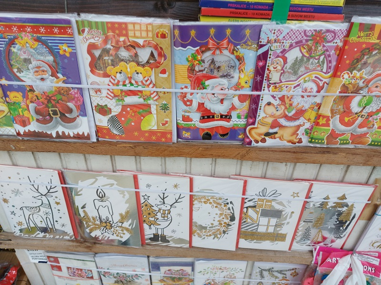 Prodavac Slađan Toskić kaže da je i ove godine potražnja za čestitkama veća u odnosu na druge stvari koje podaju, a cene su na prošlogodišnjem nivou.