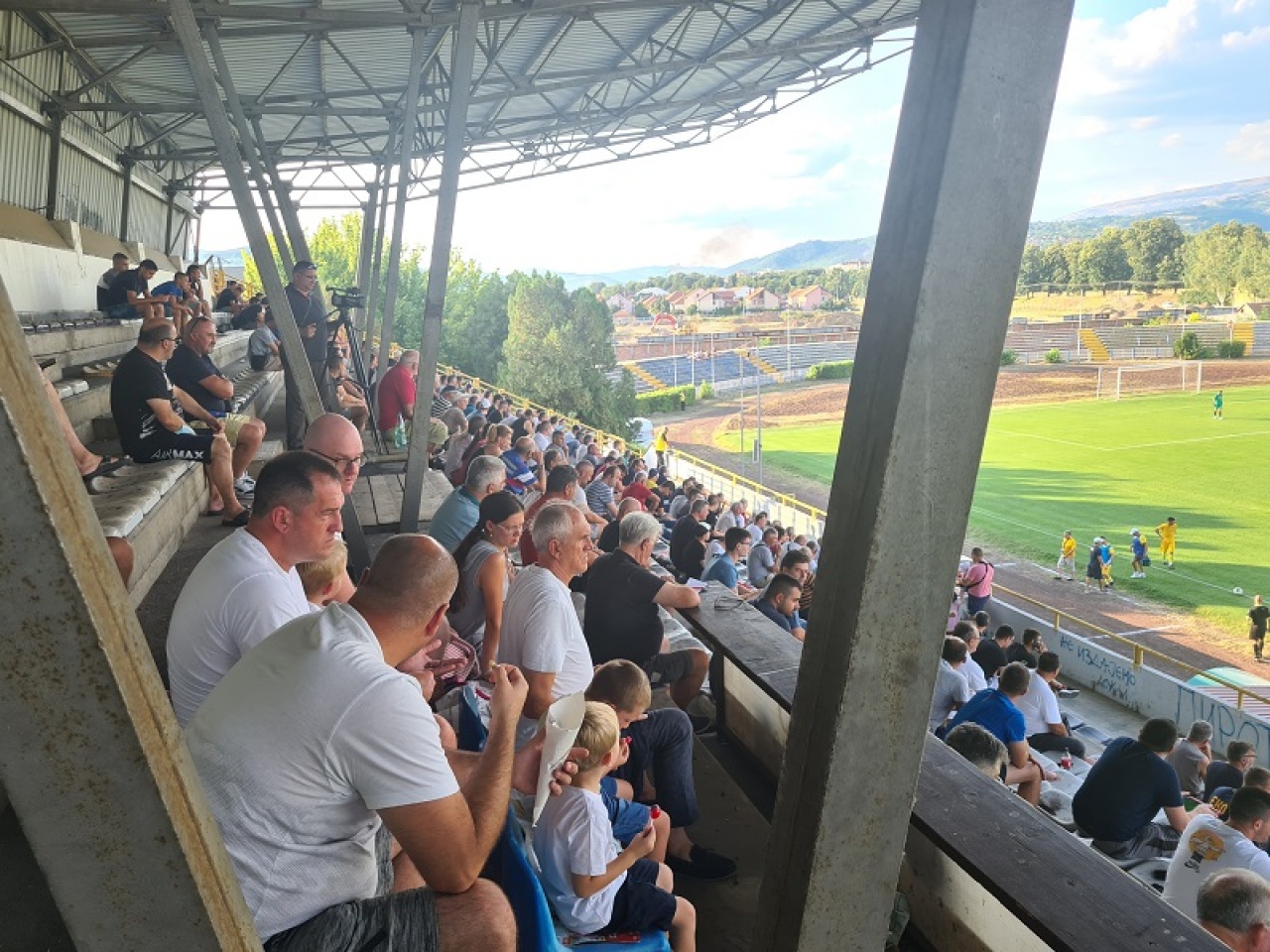 Na tribinama atmosfera kao nekada. Ljudi vole Radnički. Zaustavila ih korona. Pokriveni deo skoro pun. Bravo!