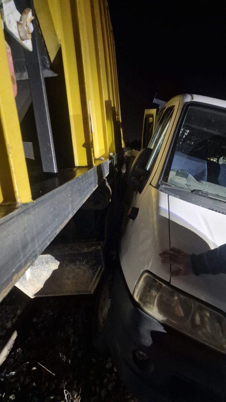 Radni voz udario u kamionet na pružnom prelazu "Đeram"! Povređenih nije bilo, pričinjena materijalna šteta!