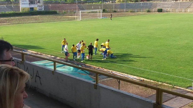 Pred kraj utakmice, jedan od gostujućih igrača je nezgodno stao i teže povredio koleno, tako da je kolima Hitne pomoći prebačen u pirotsku bolnicu. Odmah posle tog prekida, koji je trajao duže, sudija Bojan Mitrović odsvirao je kraj utakmice.