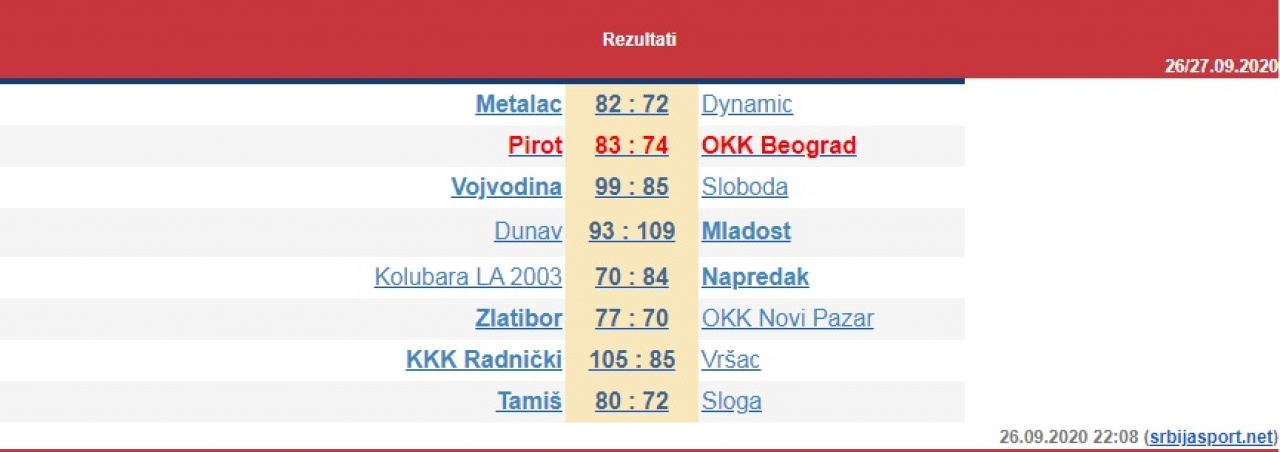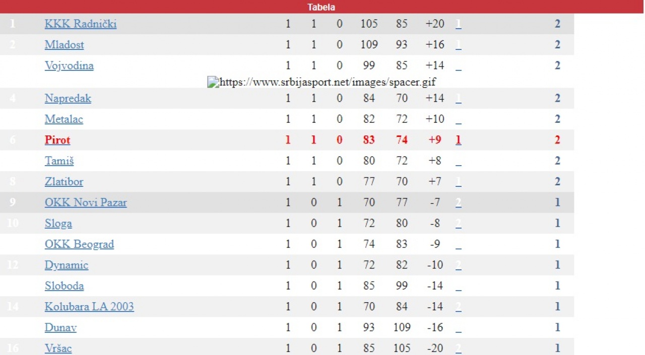 Pirot : Pirot – OKK Beograd 83:74 ( 18:21, 22:12, 21:18, 22:23)