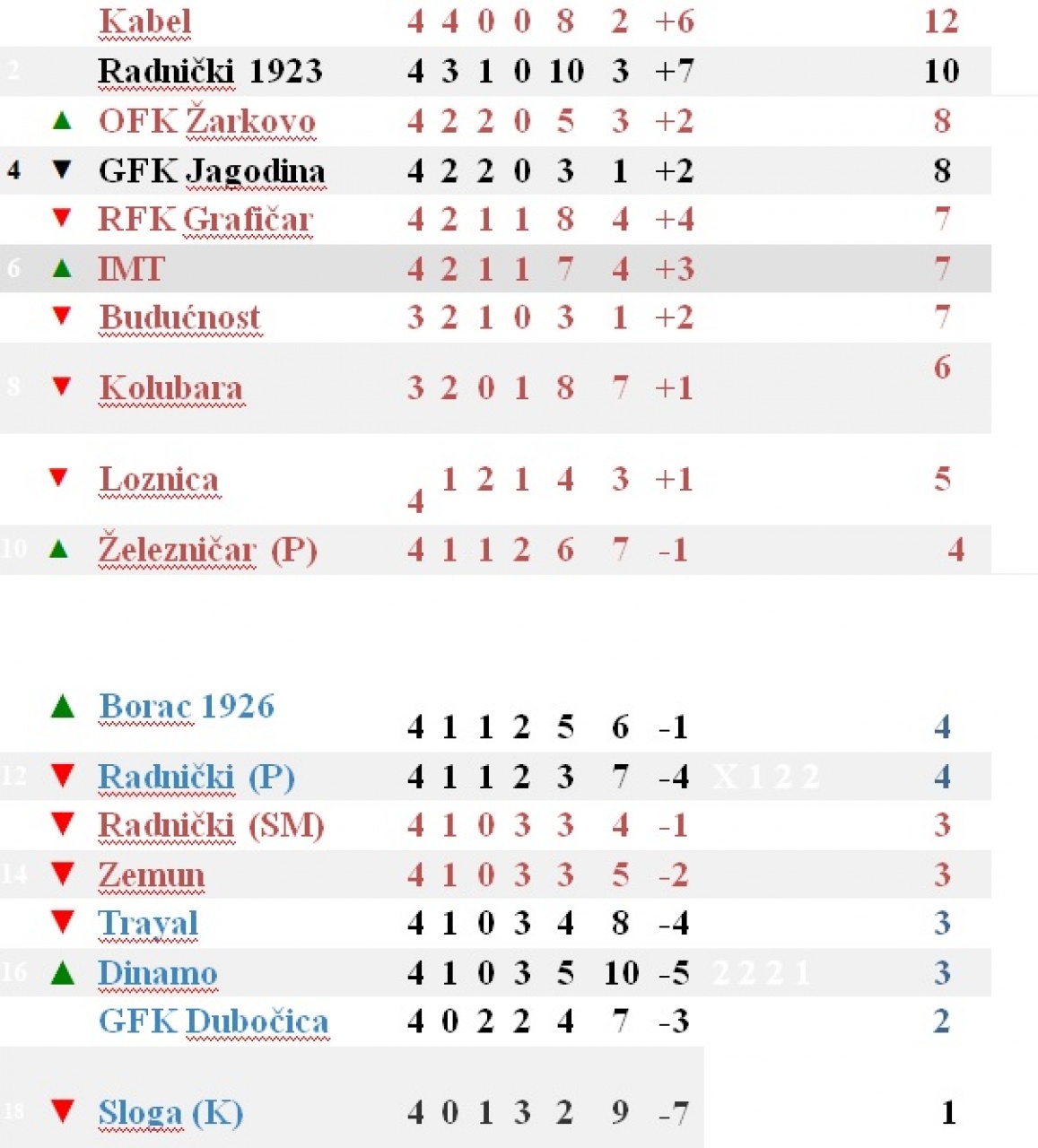Sve poštujem, ulaganje, ljubav, nastojanja da klubovi napreduju, ali, kada se kaže Radnički Pirot, Radnički Kragujevac, Borac Čačak, Zemun (Galenika), Sloboda Užice, Sloga Kraljevo, Dubočica Leskovac, Dinamo Vranje, a onda spomenu Grafičar, IMT, Kabel, onda ljudi koji malo duže pamte, pitali bi se- koji pak su ovi!? Neko ko brzo misli iskoristiće onu latinsku -Tempora mutantur… Jeste, menjaju se vremena, ali, zar je moguće da posle četiri utakmice tabela izgleda ovako.